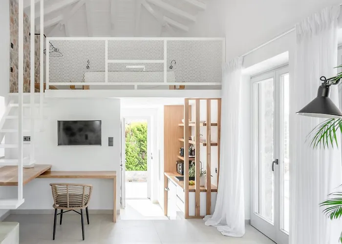 Located only a 7-minute walk from Kolios Beach, the 1-bedroom Stone Build Suite With Private Pool provides a swimming pool, a plunge pool for additional comfort. Featuring car rentals, the accommodation invites guests to visit Achladies beach, situated a 10-minute ride away.